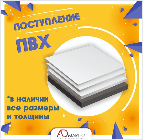 Всем доброго дня, дорогие друзья ️! Встречайте новое поступление листового пластика PVC и РЕТ ️: ◻️Прозрачный PVC ◻️АНТИБЛИК ◻️РЕТ листы ◻️Белый PVC (двухсторонний) ◻️Черный PVC (двухсторонний) ------- Все это и многое другое смотрите и приобретайте в нашем интернет-магазине: ------- Ждем Вас по адресу : ул. Сатпаева, 90/34 Казыбаева, 61а Желаем Вам прекрасного дня и отличного настроения ️! ------- Искренне Ваш, Admart.kz