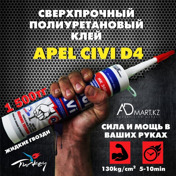 Смелее спустите курок пистолета заряженного сверхпрочным полиуретановым клеем APEL CIVI D4 и ощутите настоящую силу и мощь! Однокомпонентный клей APEL CIVI D4 предназначен для склеивания изделий из древесины, пластика, металла, камня и бетона. Быстро высыхает – 5—10мин⏱, устойчив к воздействию воды и влаги, заполняет пустоты и микротрещины, тиксотропный, экономичный, легкий в использовании. Применяется при монтажных и ремонтных работах. В наличии. Стоимость — 1 500тг. У нас только проверенные товары Искренне Ваш, Admart.kz