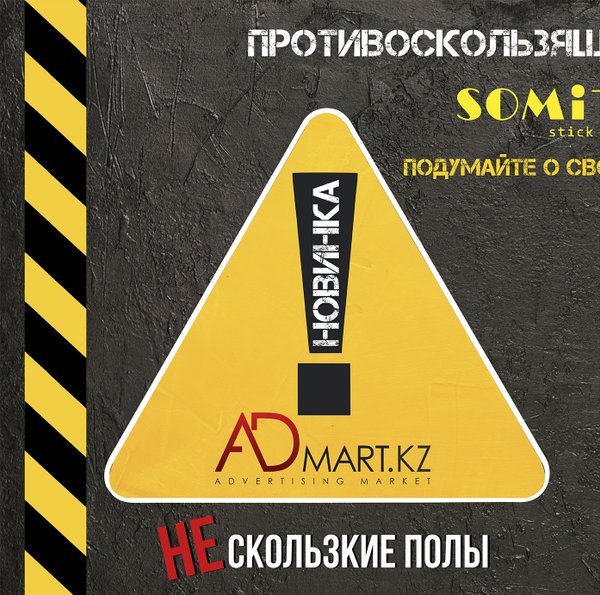 м выгодным ценам. Admart.kz не даст Вам возможности упасть, с нами надежно и безопасно! В наличии НОВИНКА — противоскользящая лента черно-желтого цвета, износостойкая, не разрушается при воздействии воды, жира и средств бытовой химии, подходит для использования на улице и внутри помещений. Более подробную информацию Вы можете найти на нашем сайте : или уточнить у наших специалистов. Искренне Ваш, ADMART.KZ