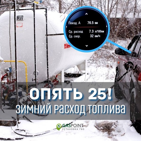 шинах (как известно из уроков физики, при понижении температуры в шинах снижается давление, а значит увеличивается сопротивление качению) 6. Аэродинамика холодного, влажного воздуха хуже (этот параметр сильнее влияет при езде по трассе, в городе малозначительно) Вот примерно такой список основных причин повышенного расхода, на любом виде топлива, в том числе и на газе. Что может помочь: 1. Установка подогрева двигателя 2. Утепление подкапотного пространства (только огнеупорными спец средствами!!!) 3. Контроль за давлением в шинах Ну и самый действенный способ, это езда в морозы на общественном транспорте) _____________ В наших авторизованных сервис центрах работают СПЕЦИАЛИСТЫ С МНОГОЛЕТНИМ ОПЫТОМ и постоянным повышением квалификации на семинарах «Автогазэксперт». Поэтому мы легко даём ВСЕРОССИЙСКУЮ ГАРАНТИЮ на оборудование установленное в любом из 70-ти сервисов по всей России и странам ТС. В городе Алматы специалисты АСЦ «Gas Point», правильно установят ГБО премиального качества на Ваш любимый автомобиль. Звоните для получения консультации или сразу приезжайте к нам в сервис. Gas Point ⠀ Алматы, ул. Розыбакиева 238а ⠀ Whatsap) ⠀