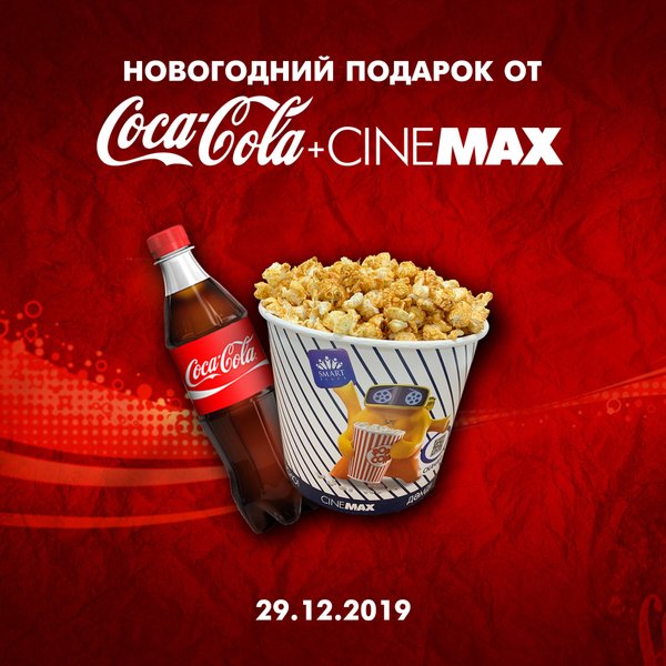 НОВОГОДНЕЕ НАСТРОЕНИЕ ОТ COCA COLA #29декабря CINEMAX и COCA COLA дарят игрушки всем, кто купит на консешн-баре CINEMAX средний стакан попкорна (сладкий, соленый) и Coca-Cola Classic или Coca-Cola Без Сахара 0,5 л (в бутылке). Количество подарков ограничено, успей порадовать себя и близких! Всех с наступающим 2020 годом!