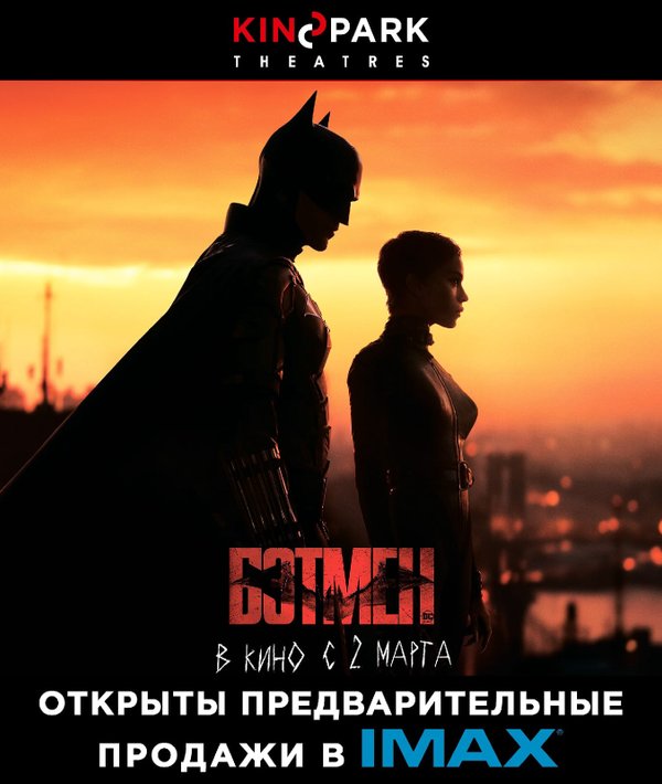 БЭТМЕН — ПРЕДВАРИТЕЛЬНЫЕ ПРОДАЖИ Kinopark Theatres объявляет об открытии предварительных продаж билетов на премьеру нового блокбастера от студии DC в формате IMAX! ️После двух лет поисков правосудия на улицах Готэма для своих сограждан Бэтмен становится олицетворением беспощадного возмездия. ️Билеты на премьерные показы 2 марта приобретайте в кассах кинотеатров Kinopark 8 IMAX Saryarqa (Нур-Султан), Kinopark 7 IMAX Keruen (Нур-Султан) и Kinopark 11 IMAX Esentai (Алматы), а также онлайн на сайте kinopark.kz (Предпродажи).