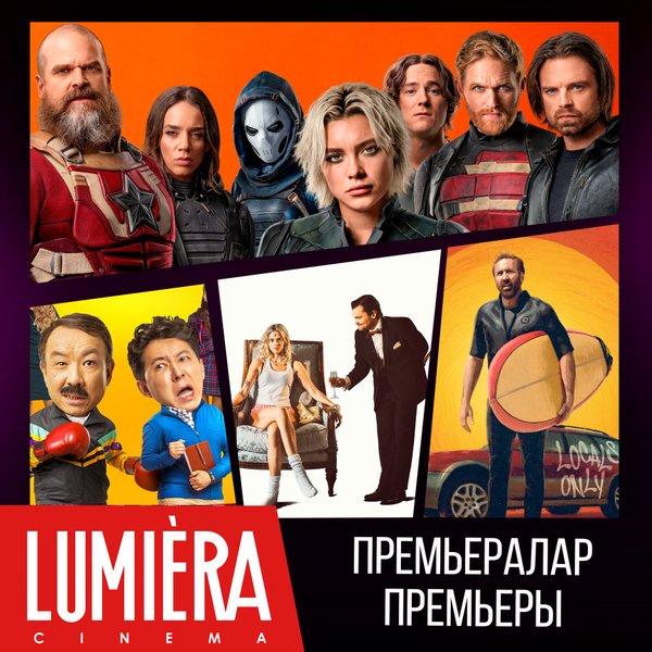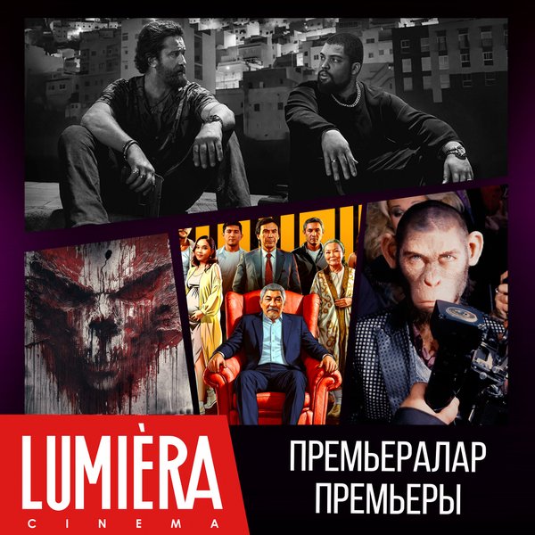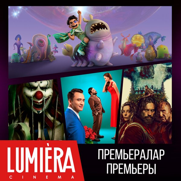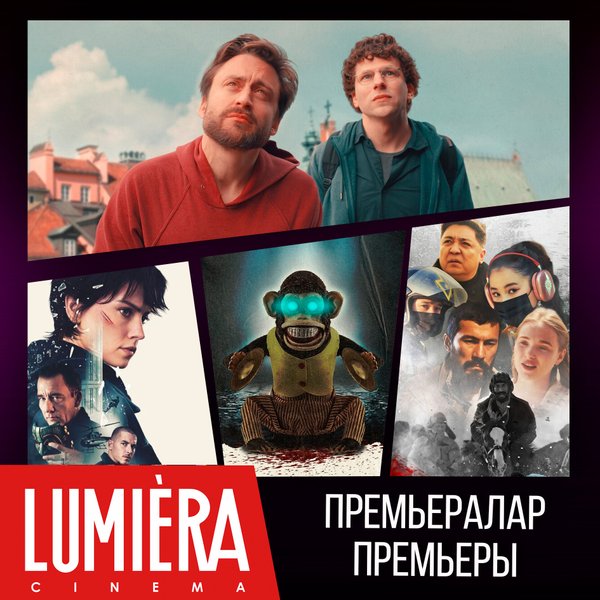 Дәстүр бойынша біз сіздермен бугіннен бастап Lumiera cinema сізді кутетін жаңа фильмдермен белісеміз ___________________ По традиции делимся с вами новинками кино, которые будут ждать вас в Lumiera cinema уже с сегодняшнего дня «Fake-овый арман» жанр: драма, социальный 14+ «Клинер» жанр: боевик, драма, триллер 18+ «Обезьяна» жанр: ужасы 18+ «Настоящая боль» жанр: комедия, драма 18+ «Болмаған балалық шақ» жанр: драма 14+ «Баг Бой — супергерой джунглей» жанр: мультфильм 6+
