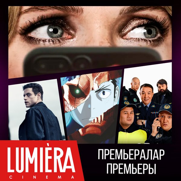 Дәстүр бойынша біз сіздермен бугіннен бастап Lumiera cinema сізді кутетін жаңа фильмдермен белісеміз ___ По традиции делимся с вами новинками кино, которые будут ждать вас в Lumiera cinema уже с сегодняшнего дня «Мир Юрского периода: Возрождение» жанр: боевик, приключения, триллер, фантастика 14+ «102» жанр: драма, триллер 18+ «Магия четырёх стихий» жанр: приключения, фэнтези, семейный 12+ «Тоқты мен Серке» жанр: приключения, мультфильм 6+ «Пожиратель душ. Голоса мертвых» жанр: ужасы 18+
