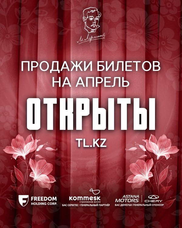 АФИША | АПРЕЛЬ 2026 Национальный русский театр драмы им. М. Лермонтова приглашает вас на спектакли апреля 2026 года! Бронирование и продажа билетов онлайн: Будьте в курсе новостей театра! Наш бот в Telegram не позволит вам пропустить главное —