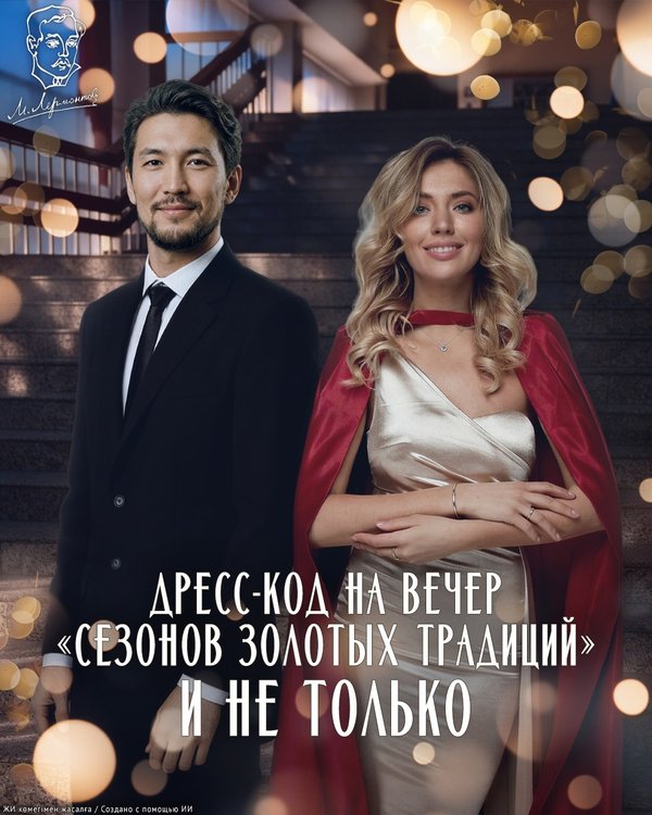 в дни праздничных мероприятий, но и на протяжении всего театрального сезона. Будьте неотразимы! *** Құрметті көрермендер, біз театр қабырғасында сіздердің өздеріңізді ғана емес, сондай-ақ талғампаз талғамдарыңызды да көруге әрдайым қуаныштымыз. «Алтын дәстүрлер маусымының» ұмытылмас кеші қонақтарымыздан талғампаз әрі ұстамды дресс-кодты талап етеді. Бұл — өзіңіздің ең үздік образдарыңызды көпшілікке паш етудің тамаша мүмкіндігі! Ерлер костюмдері, кешкі көйлектер және сүйікті аксессуарларыңыз — сеніңіз, бұл кеште жарқырауға әбден болады! Театрға бару — әрқашан ерекше оқиға, ал сыртқы келбет кештің жалпы мәдениеті мен көңіл күйінің ажырамас бөлігіне айналады. Айта кетейік, талғампаз стиль дәстүрі тек мерекелік күндерде ғана емес, бүкіл театр маусымы бойы орынды. Әрдайым әдемі болыңыздар!