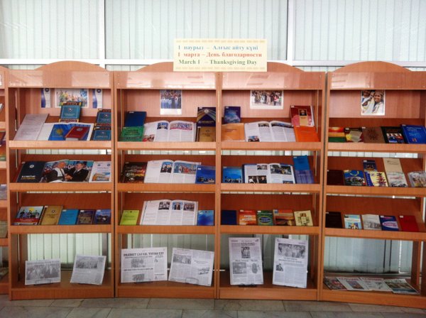 Национальная библиотека РК 1 марта 2017 г. организовала в Доме Дружбы г.Алматы выездную книжную выставку «1 Наурыз – Алғыс айту күні» в рамках проведения Ассамблеей народа Казахстана г.Алматы фестиваля «Казахстан – наш общий дом», посвященной Дню Благодарности.