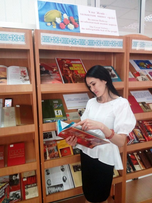 әдеби шығармалары ұсынылған. Кітап көрмесімен танысуға шақырамыз! В читальном зале «Қазақстан кітаптары» организована книжная выставка «Ұлы Жеңіс – халықтың өшпес ерлігі», посвященная 9 мая — Дню Победы. День Победы – это праздник в честь тех, кто подарил нам мир на этой земле. 9 мая 1945 года – это самый светлый день и самая дорогая памятная дата для ветеранов войны, которая и стала окончательной датой Победы. Из фонда Национальной библиотеки РК на книжной выставке представлены документальные материалы о подвигах казахстанцев в Великой Отечественной войне, Сталинградской битве, битве под Москвой, а также художественная литература казахстанских авторов.