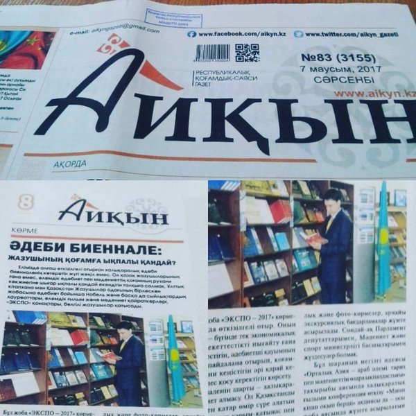 Үстіміздегі 12—14 маусым аралығында өтетін #Халықаралық_Əдеби_Биеннале жөнінде тағы да білгіңіз келсе #Айқын республикалық қоғамдық-саяси газетін парақтасаңыздар болады. Қазақстан Республикасы Ұлттық Кітапхана