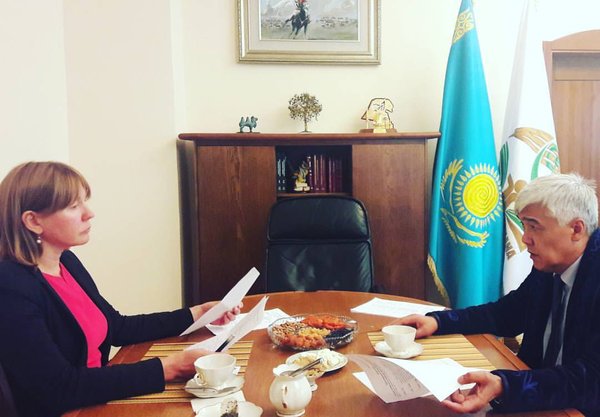 ҚР Ұлттық кітапханасында #ЮНЕСКО бюросының директоры Криста Пиккат 12—14 маусым күні өтетін #Халықаралық_Əдеби_Биеннале жөнінде Ұлттық кітапхана директоры Ж.Т. Сейдумановпен кеңесу үстінде. Қазақстан Республикасы Ұлттық Кітапхана