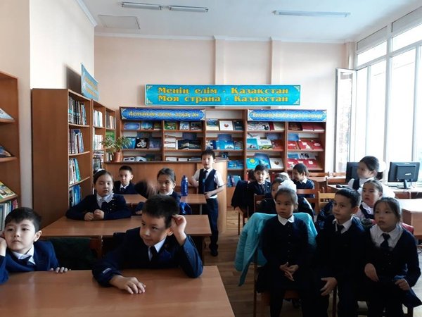 х; воспитание казахстанского патриотизма, чувства любви и гордости за свою многонациональную Родину – Республику Казахстан. Мероприятие сопровождала мультимедийная слайдовая презентация. Библиотекарь рассказала о государственных символах Республики Казахстан. Ребята не только вспомнили, но и узнали что-то новое о них. Затем была проведена викторина, посвященная нашей стране – Республике Казахстан, а также её Государственным символам. Дети с удовольствием отвечали на вопросы викторины, они показали хорошие знания и эрудицию, хотя на некоторые вопросы приходилось подумать.