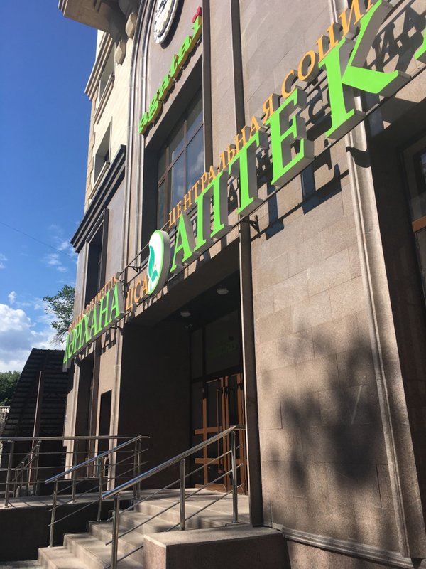 Центральная Социальная Аптека располагается по адресу Казахстан, Алматы, проспект Сакена Сейфуллина, 589А.