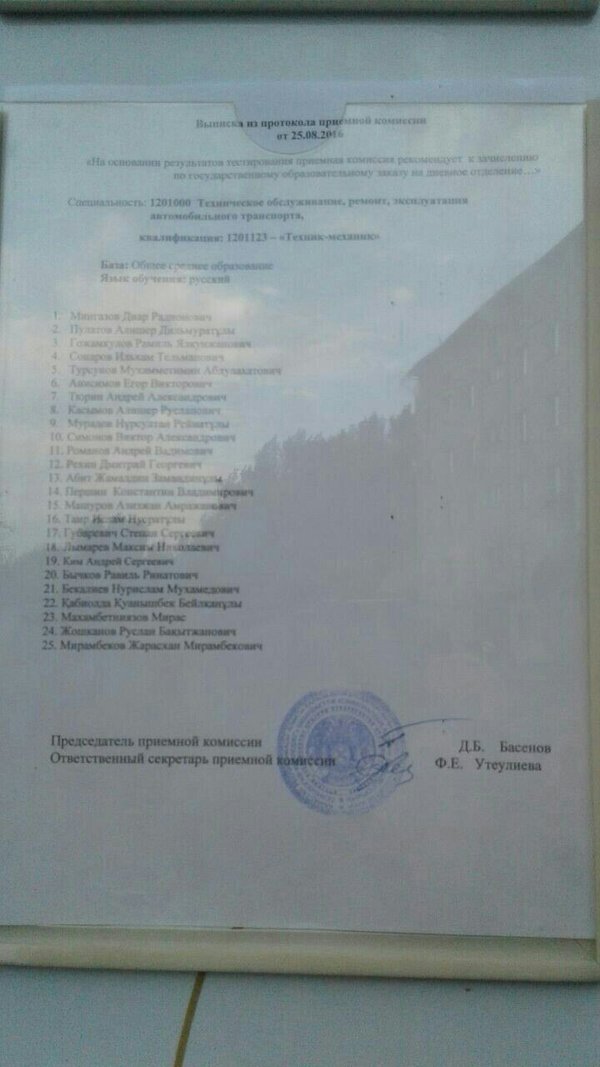 роцессов технического обслуживания и ремонта на высокотехнологичном оборудовании оформление документации по учету статистической отчетности и эффективности использования автотранспортных средств Срок обучения: Обучение осуществляется по дневной и заочной формам на государственном и русском языках на базе основного общего образования (9 кл.) – 3г.10мес. (бюджетное и платное отделения) на базе среднего общего образования (11 кл.) – 2г. 10 мес. (бюджетное и платное отделения) заочное отделение – 2 г.10 мес.(платное, на базе11 классов) Трудоустройство выпускников: фирменные и дилерские центры, станции технического обслуживания автотранспортные, авторемонтные и автосервисные предприятия Базы практики: ОО «Astana Motors Almaty», ТОО «Blue Star of Kazakhstan», ТОО «Вираж Центр», ТОО «Mercur Аuto LTD» и др.