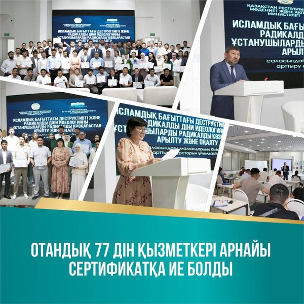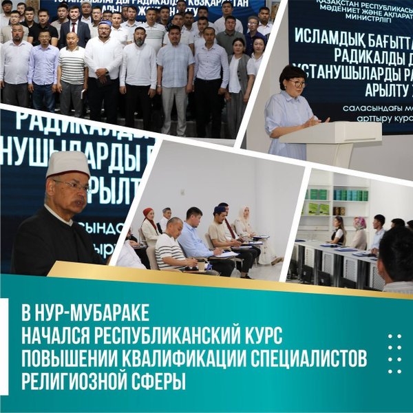 Еліміздің 17 аймағынан дін саласының 65 маманы біліктілігін арттыруға кірісті. Атап айтқанда, Ақпарат және қоғамдық даму министрлігі Дін істері комитеті мен Нұр-Мүбарак университеті бірлесіп «Исламдық бағыттағы деструктивті және радикалды діни идеологияны ұстанушыларды радикалсыздандыру және оңалту саласындағы мамандардың біліктілігін арттыру курстарын ұйымдастыру» курсын өткізуде.