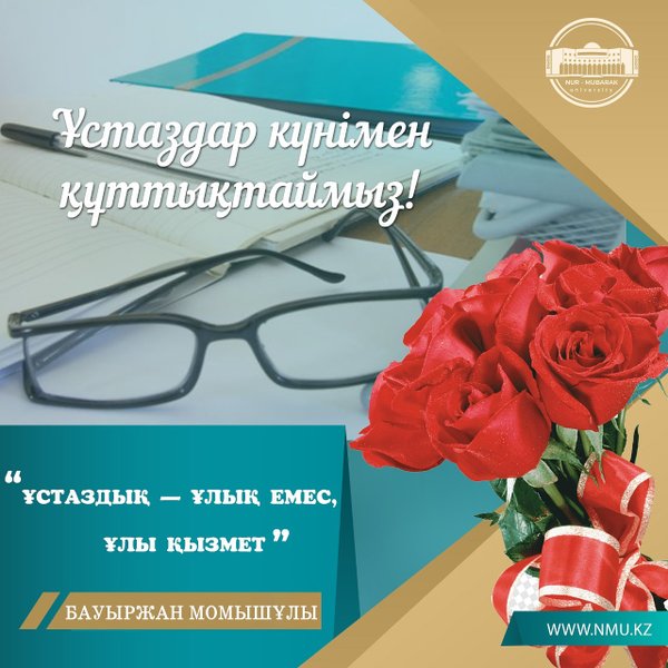 ып, «Ұстаздар күні» мерекесімен құттықтайды. Әр шаңыраққа құт-береке, дендеріңізге саулық, шығармашылық өрлеу мен шалқар шабыт тілейміз!