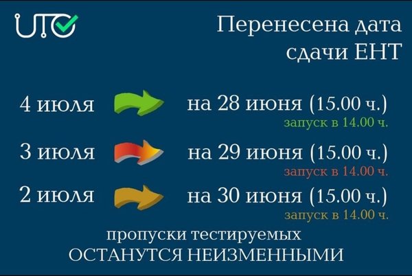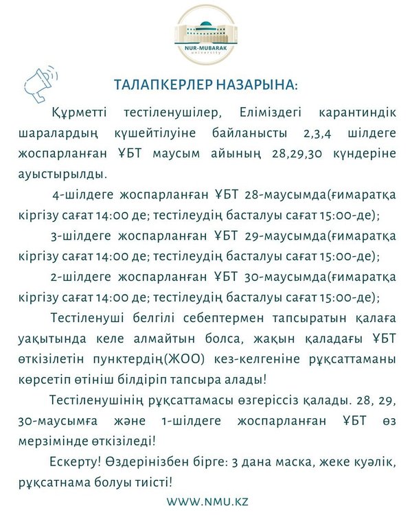 Шұғыл! Срочно! Құрметті талапкерлер еліміздегі карантинге байланысты ҰБТ-ң уақыттары ауысты!