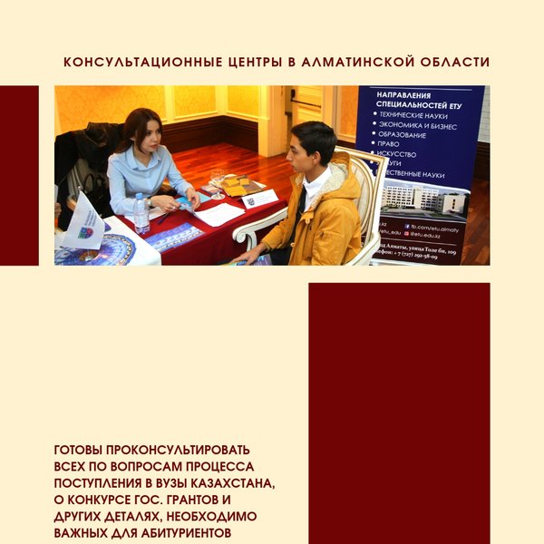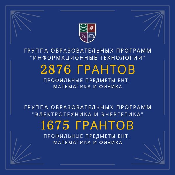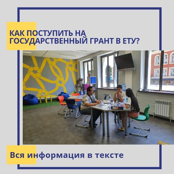 ециальный бланк для заявления, где вы имеете право выбрать до 4-х групп образовательных программ в не более чем 4 вуза. 4. Если ЕТУ ваша цель № 1, укажите наш вуз первым в списке. Код вуза ЕТУ - 160. 5. Волноваться ни о чем не надо. По приезду в ЕТУ наши консультанты подробно вам всё объяснят и помогут, если у вас возникнут вопросы. 6. После завершения процедуры необходимо 1—2 дня подождать лист подтверждения о вашем участии в конкурсе государственных образовательных грантов. Результаты конкурса гос. грантов выйдут в период с 5 по 10 августа. Правила приёма для абитуриентов других городов: 1. Необязательно приезжать в Алматы 2. Все собранные документы вы можете подать в любом вузе вашего города. 3. В вузе вашего города вам также предоставят специальный бланк для заявления, где вы имеете право выбрать до 4-х групп образовательных программ в не более чем 4 вуза. 4. Если ЕТУ ваша цель № 1, укажите наш вуз первым в списке. Код вуза ЕТУ - 160. 5. По приезду на место подачи документов, консультанты должны помочь вам с заполнением заявления. 6. После завершения процедуры необходимо 1—2 дня подождать лист подтверждения о вашем участии в конкурсе государственных образовательных грантов. Результаты конкурса гос. грантов выйдут в период с 5 по 10 августа.