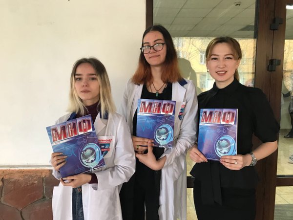 МИФ — журнал, публикующий статьи по трем направлениям: математика, информатика и физика. Студентки группы 106, Яцутко Мария и Левашова Анастасия, подготовили статью для нового выпуска журнала под руководством преподавателя математики — Иманберлиной Кызылгул Мылтыкбаевны. Тема статьи: «Математика в медицине».