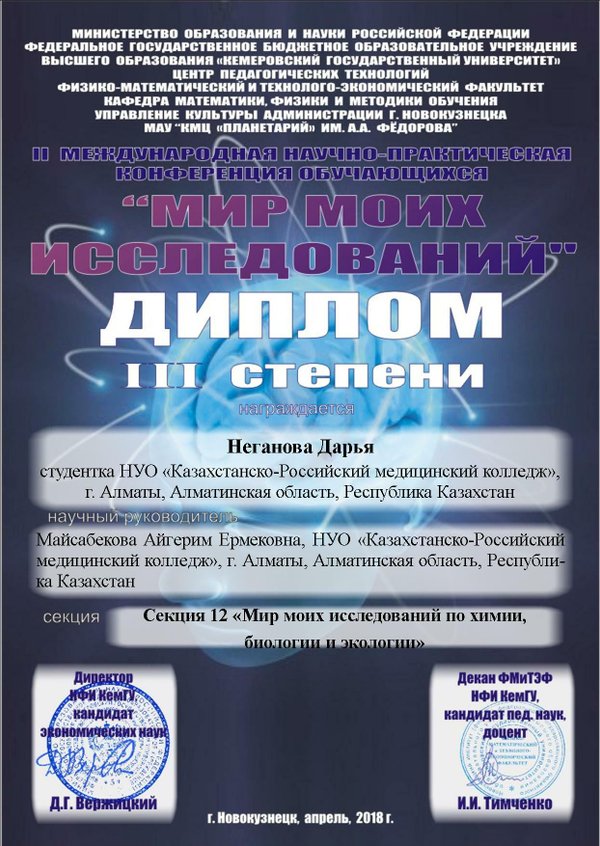 Студенты Казахстанско-Российского медицинского колледжа продолжают принимать участие в дистанционных конкурсах по химии