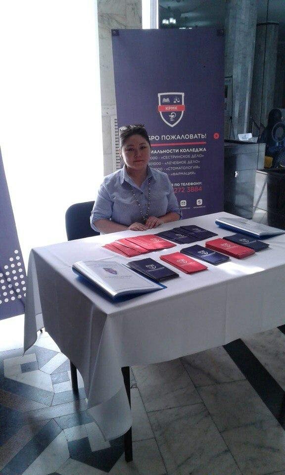 анной ярмарке впервые. Под чутким руководством председателя приемной комиссии – Жадыры Садвакасовой и преподавателя спецдисциплин–АйгеримТулеуовой, колледж представляли члены студенческого совета –Ыбырай Алимбек и Дидар Жумадил. Каждому из учебных заведений было отведено специальное место, где можно было разместить рекламные баннеры, буклеты и свою корпоративную продукцию. Организаторы разделили мероприятие на две части: с утра форум проходил для абитуриентов 11 классов, а ближе к обеду – для 9. Школьников сопровождали их классные руководители, завучи и родители. По окончании городского форума, нам удалось побеседовать с председателем приемной комиссии – Жадырой Садвакасовой. Она осталась довольна организованностью проводимого мероприятия и была приятно удивлена таким огромным количеством интересующихся нами абитуриентов. «Нас было 7 колледжей абсолютно разного профиля. Сферу медицины представляло только наше учебное заведение. Было очень много заинтересованных ребят. В основном, к нам подходили абитуриенты, которые уже твердо решили связать свою жизнь с медициной. Мы, в свою очередь, провели консультационную работу, как с желающими поступить в наш колледж, так и с родителями ребят. Абитуриенты, в ходе нашей беседы, узнали много нового о наших специальностях, организациях, в которых смогут успешно работать после окончания нашего колледжа. Много вопросов было о жизни студентов, возможности занятий спортом, творчеством, и какими-то дополнительными дисциплинами. На все вопросы мы постарались дать максимально точные, исчерпывающие ответы». Ранее, Казахстанско-российский медицинский колледж не принимал участия в образовательном форуме. Сегодня, мы выходим на передовой, более масштабный уровень. Как показала практика, нами интересуется все большее количество абитуриентов, которые хотят обучаться именно в нашем колледже. Это не может не радовать, и мы, в свою очередь, будем делать все для того, чтобы совершенствовать качество наших знаний настолько, насколько это вообще возможно. Нашей главной задачейбыло, есть и будет – воспитание специалистов своего дела, чтобы наше с Вами здоровье было в надежных руках.