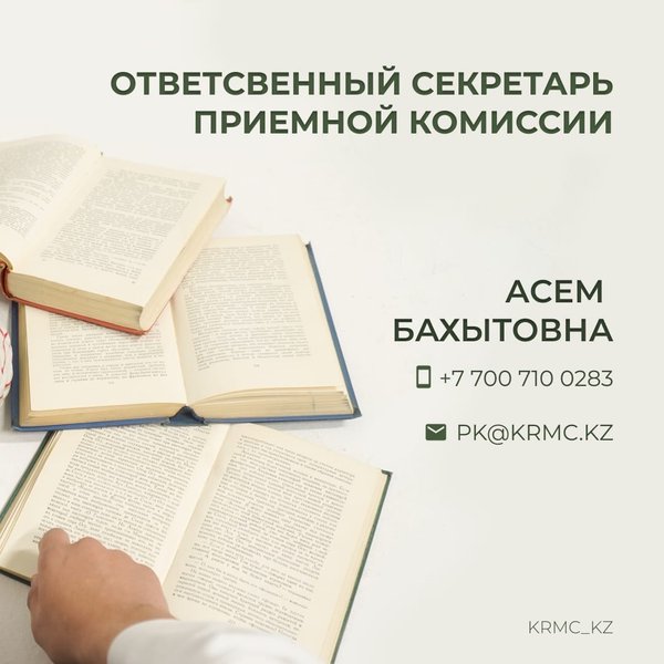Казахстанско-Российский Высший мед.колледж (16.05.2020): Добрый день, дорогие абитуриенты! Мы рады сообщить, что вы можете получить безопасную онлайн консультацию у секретаря приемной комиссии. Вы можете обращаться по любым вопросам, касающимся поступления, по следующим данным: Асем Бахытовна ️ ️ Pk@krmc.kz