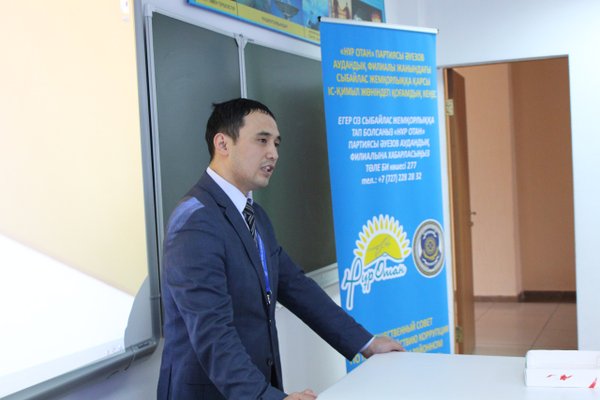 В рамках единого антикр.часа колледж Нархоз посетили главный специалист Агентства по делам государственной службы и противодействию коррупции по городу Алматы — Паркентулы Рахат, руководитель и член общественного совета по противодействию коррупции при партии Нур Отан по Ауезовскому району — Балгимбаев С.С., Закиров Р.Т.