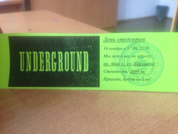 Дорогие студенты 2 и 3 курсов! По уважительным причинам мероприятие «День студента» переносится на 16 ноября. Будет проводиться в клубе «UNDERGROUND» Ждем вас по адресу: пр. Абая- ул. Байзакова с 17.00 до 22.30 Просим проявить понимание! КДМ