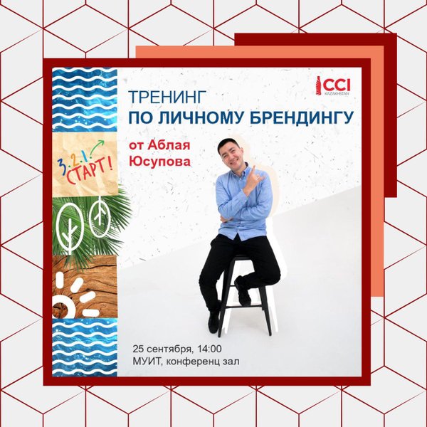 «3.2.1. Старт!» приглашает вас на уникальный тренинг по формированию личного бренда от Аблая Юсупова, который состоится уже 25 сентября ️