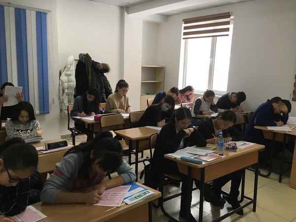 11-сынып оқушылары пәндік қайталау сынағын жазуда. Арай Тест» Білім Беру Орталығы