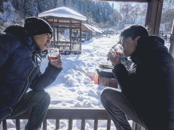 Шай ішілмей, мұз болып қалып жатқан суықта сурет үшін ғана шай ішіп отырған «подружкалар».