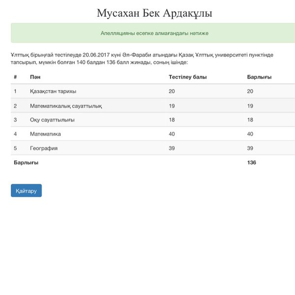 Бүгінгі күннің ең жоғары (136) балл иегері — Мусахан Бекті құттықтаймыз! @bekonti018