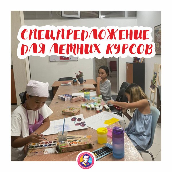 роведения вступительных экзаменов 2 потока: «Рисунок» 24 августа 1 смена: с 10:00—12:00 2 смена: с 14:00—16:00 «Живопись» 25 августа 1 смена: с 10:00—12:00 2 смена: с 14:00—16:00 «Композиция» 26 августа с 10:00—12:00 2 смена: с 14:00—16:00 Вступительные экзамены будут проходить в здании школы по адресу: ул. Ауэзова, 38А, уг. Карасай батыра. Стоимость 10 000 тг (в стоимость не входят худ. материалы) Записаться на вступительные экзамены можно через чат-бот или позвоните на: или по тел., а также приходите в будни с 9.00 до 18.00 в приемную (обед. перерыв с 13.00 до 14.00) на Ауэзова, 38а. Связаться с нами можно через чат-бот по номеру: