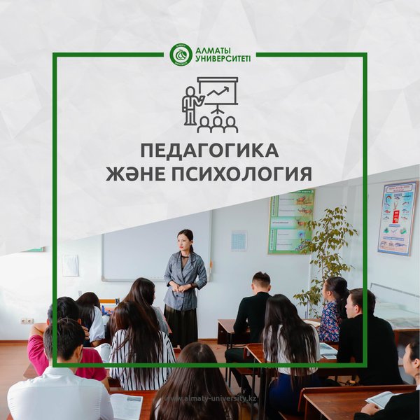 лып табылады. Мектеп бакалавриат және магистратура бағдарламалары бойынша мамандар дайындайды. ⠀ Бакалавриат мамандықтары: ▪Мектепке дейінгі оқыту мен тәрбиелеу педагогикасы ▫Бастауышты оқытудың педагогикасы мен әдістемесі ▪Педагогика және психология ▫Дене шынықтыру мұғалімдерін даярлау ▪Информатика мұғалімдерін даярлау ▫Биология мұғалімдерін даярлау ▪Тарих мұғалімдерін даярлау ▫География мұғалімдерін даярлау ▪Қазақ тілі мен әдебиеті мұғалімдерін даярлау ▫Шетел тілі мұғалімдерін даярлау ▪Психология ⠀ Магистратураның мамандықтары: ▪Педагогика және психология ▫Пәндік мамандандырылмаған мұғалімдерді даярлау Школа педагогики играет ведущую роль в подготовке высококвалифицированных кадров. Реформа системы образования в Республике Казахстан поставила вопрос о качестве профессионального образования в высших учебных заведениях, подняла проблемы подготовки будущих учителей как компетентных специалистов в будущей профессиональной деятельности. ⠀ Сегодня очевидно, что одной из наиболее актуальных проблем является развитие конкурентоспособности человека и внедрение системы образования, ориентированной на результат, выход в мировое образовательное пространство. Основной целью школы является подготовка квалифицированного специалиста в соответствии с современными требованиями. Школа готовит специалистов по специальностям бакалавриата и магистратуры. ⠀ Специальности бакалавриата: ▪Педагогика дошкольного воспитания и обучения ▫Педагогика и методика начального обучения ▪Педагогика и психология ▫Подготовка учителей физической культуры ▪Подготовка учителей информатики ▫Подготовка учителей биологии ▪Подготовка учителей истории ▫Подготовка учителей географии ▪Подготовка учителей казахского языка и литературы ▫Подготовка учителей иностранных языков ▪Психология ⠀ Специальности магистратуры: ▪Педагогика и психология ▫Подготовка учителей без предметной специализации