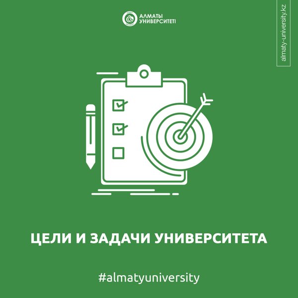 беру бағдарламаларын әлемдік білім беру кеңістігіне біріктіруге, өндірістегі негізгі және қолданбалы зерттеулерді дамытуға бағытталған. ⠀ Алматы және Алматы облыстарында құқық қорғау органдарымен, салық комитеттерімен, жоғары оқу орындарымен, орта мектептермен және мектепке дейінгі ұйымдармен Алматы қаласының университетінің студенттері мен магистранттарының өндірістік-педагогикалық тәжірибесін өткізу үшін келісімшарттарға қол қойылды. ⠀ Профессорлардың ғылыми-теориялық мақалалары жақын және алыс шет елдердің конференцияларында және жоғары рейтингтік басылымдарда жарияланады (Thomson Reuters, Scopus, RINC). Университетте сапалы білімге ерекше көңіл бөлінеді. Университет заманауи техникалық құралдармен жабдықталған — дәріс залдары, зертханалар, интерактивті және мультимедиялық кабинеттер. Цель и задача университета – воспитывать молодых людей в духе патриотизма, обеспечивая качественное и доступное образование. В настоящее время в университете есть профессорско-преподавательский состав, имеющий степень 66%. Среди них есть академики Национальной академии наук, почетные профессора иностранных университетов, обладатели международной стипендии Болашак, доценты, профессора. Обучение проводится на трех языках с соблюдением принципов кредитной технологии. ⠀ Стратегический план Университета на 2013—2020 годы направлен на подготовку высококвалифицированных специалистов, интеграцию образовательных программ в мировое образовательное пространство, разработку фундаментальных и прикладных исследований в производство. ⠀ Подписаны контракты с правоохранительными органами, налоговыми комитетами, высшими учебными заведениями, средними школами и дошкольными организациями в Алматы и Алматинской области для проведения производственной и педагогической практики студентов и магистров университета Алматы. ⠀ Научно-теоретические статьи профессоров публикуются на конференциях ближнего и дальнего зарубежья и высокорейтинговых изданиях (Thomson Reuters, Scopus, RINC). В университете особое внимание уделяется качественному образованию. Университет имеет оснащенные современным техническим оборудованием – лекционные залы, лаборатории, интерактивные и мультимедийные кабинеты.