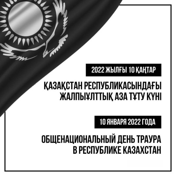 лығында) азаматтардың көшеде жүруіне тыйым салынған коменданттық сағат енгізілген болатын. Бірқатар өңірде ол сағат 23:00-ден 7:00-ге дейін белгіленген. В Казахстане 10 января проходит день траура. Cоответствующее распоряжение «Об объявлении общенационального траура в Республике Казахстан в связи с человеческими жертвами в результате террористических актов» Глава государства Касым-Жомарт Токаев подписал 8 января. «В связи с гибелью людей в результате совершенных в Республике Казахстан террористических актов объявить 10 января 2022 года общенациональный траур в Республике Казахстан», — говорится в указе. Напомним, в Казахстане на период действия чрезвычайного положения (с 5 января до 19 января 2022 года) введен комендантский час с запретом на передвижение граждан по улицам. В большинстве регионов он действует с 23:00 до 7:00.
