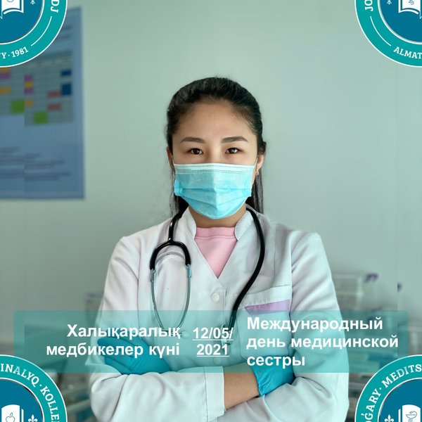 сәттеріңіз көп болсын! Бұл мерекеде қазақстандық денсаулық сақтау жүйесінің мейіргерлерін дайындауға зор үлес қосқан оқытушылар қауымын, сондай-ақ республикамыздың медициналық ұйымдарында мейіргерлік үрдісті жүзеге асыратын болашақ жоғары білікті мамандар-студенттерді құттықтағымыз келіп отыр. (Суретте: Касенова Анель Касеновна — 17—2 «Мейіргер ісі» тобының студенті) Коллектив КГП на ПХВ «Высший медицинский колледж» УОЗ г.Алматы с особой любовью поздравляет глубокоуважаемых медицинских сестер с их профессиональным праздником! В процессе лечения и выздоровления нельзя недооценивать Ваш вклад, ведь именно вы обеспечиваете компетентное выполнение врачебных назначений, ухаживаете за больными, при необходимости готовы оказать первую медицинскую помощь. Пусть каждый день Вас радуют своим теплом не только те, кто обязан вам хорошим самочувствием, но и ваши родные и близкие люди. Пусть у вас будет все то, что заставляет улыбаться и радоваться жизни! Хотим выразить благодарность и нашим дорогим преподавателям за вклад в подготовку медицинских сестер системы казахстанского здравоохранения, а также поздравить наших студентов. (На фото: Касенова Анель Касеновна – студентка группы 17—2 «Сестринское дело»)