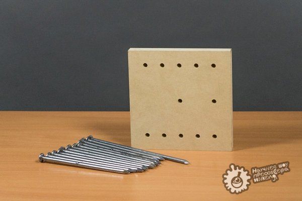 — для начала удостоверимся в том, что просто так 11 гвоздей не удержать — они сразу упадут;