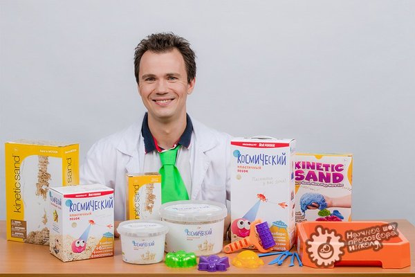— возьми кусок кинетического песка в руки, а затем аккуратно перекладывай массу из одной руки в другую. Обрати внимание, как песчинки цепляются друг другу. Все это благодаря специальному полимеру; — теперь сделай так, чтобы песок «вытекал» из твоей руки. Обрати внимание: делает он это не струйкой, как сухой песок, а плотным песочным «водопадом»; — а теперь возьми формочку для песка (или еще какую-нибудь интересную емкость), наполни ее песком, аккуратно переверни и вынь форму. Получилась настоящая песчаная скульптура! Наука — это здорово!