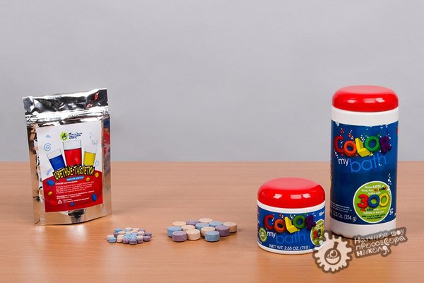 Очень забавный опыт. Если добавить внутрь теплой воды порошок и хорошенько его перемешать, то через некоторое время вся вода превратится в зеленую (или синюю) слизь. Наверняка среди вас, дорогие зрители, найдутся любители принять ванну со слизью :))))) Слизь может получится разной в зависимости от количества порошка, а также времени проведения эксперимента — слизь со временем становится более густой. Попробуйте! Наука — это здорово!