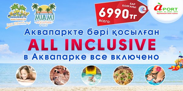 Акция действует при покупке на сайте hawaii.kz. Цены от 2500тг на полный день.