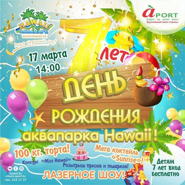 Друзья, успейте купить билеты до 7 июня на сайте hawaii.kz со скидкой 50%. Билетами можно будет воспользоваться до 31 декабря 2020 г.