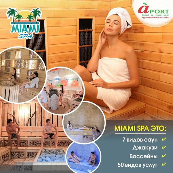 исленные джакузи и аквабары! Отличное меню с аппетитными ценами! Просторный и комфортный MIAMI SPA-центр с полным спектром релакс-услуг: бани, сауны, парилка, фитобочки, массажи все видов и самые востребованные косметологические процедуры! по всем вопросам звоните: +7 727 3121511 (12)⠀