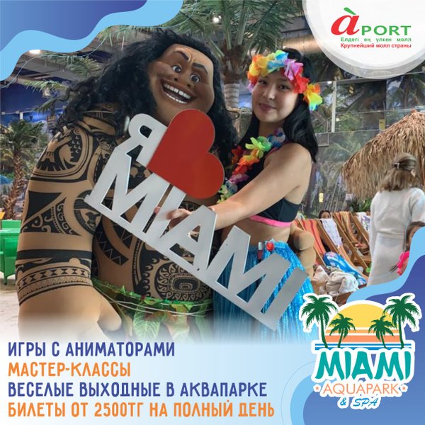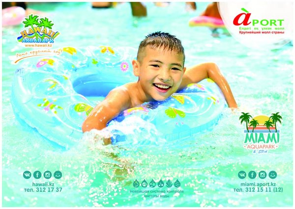Скоро каникулы, а Вы не знаете куда сводить детей? У нас отличная новость: аквапарк Hawaii, Miami & Spa приглашает всех на пляжные каникулы! @miami_hawaii_aquapark С 5 по 15 ноября в аквапарке вас ждут: весёлые аниматоры крутые призы 12 видов горок бассейны с настоящими волнами мастер-классы для детей ⠀ Аквапарк Hawaii, Miami & Spa работает ежедневно с 11:00 до 22:00 Адрес: г.Алматы, пр-т Райымбека, молл Апорт