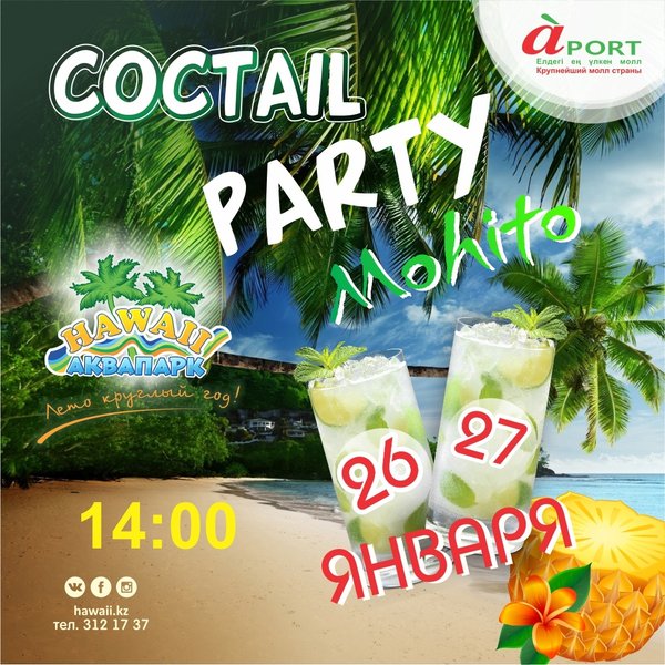 26 и 27 января «Cocktail Party» в аквапарке Майами и Гавайи!⠀ Для Вас мы подготовили : * развлекательную программу с аниматорами * мастер-класс по приготовлению коктейля«Мохито» * конкурсы, призы и подарки * акваэаробика * а также дискотека * с 16:00—17:00 – розыгрыш призов среди Отличников школ! ⠀ Начало в 14:00 Ждем Вас! ⠀ И напоминаем про последние дни акции! Не упустите уникальную возможность посетить аквапарк + СПА центр на полный день всего за 3500 тг! Акция действует в любой день на взрослых и детей! Акция не действует с другим… — Читать дальше