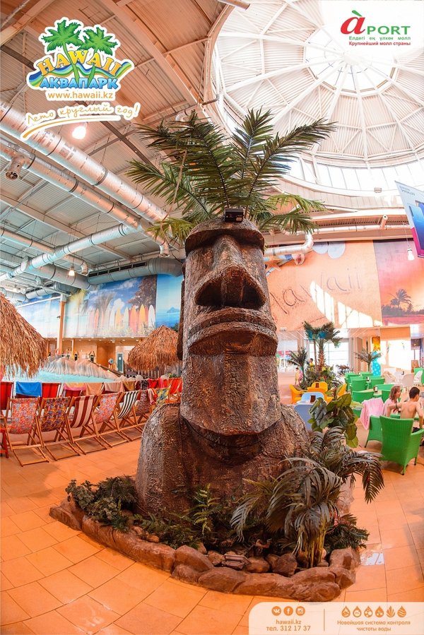 Моаи — каменные статуи на побережье острова Пасхи в виде человеческой головы высотой до 20 метров. Вопреки распространённому мнению, они «смотрят» не в сторону океана, а в глубь острова. Некоторые Моаи имеют «шапки» из красного камня. Изготовлялись Моаи в каменоломнях в центре острова. Именно такая статуя установлена и в аквапарке Гавайи. Придя в аквапарк Гавайи, не забудьте сделать селфи рядом с древней каменной статуей Моаи.