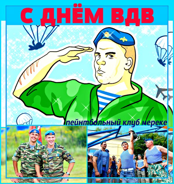 Сегодня мы поздравляем тех, кто научился летать, кто доказал, что нет ничего невозможного, и каждый раз делает решающий шаг на пути к победе! Мы гордимся вами и поздравляем с праздником ВДВ. Пейнтбольный клуб Мереке