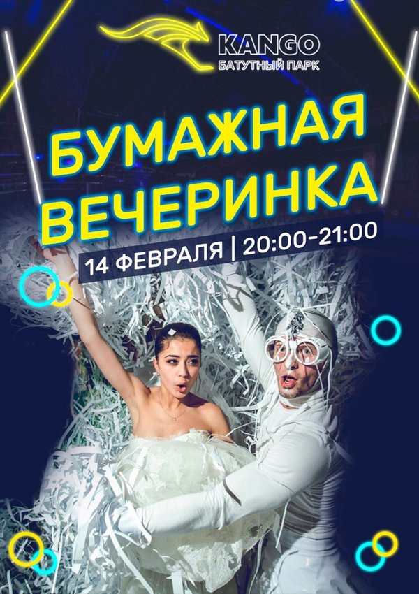 Думаешь чем удивить свою половинку 14 февраля? Приходи на первую бумажную вечеринку на батутах! В программе: — игры — конкурсы — танцевальные батлы — флешмоб иииии бумажная дискотека ⏰время вечеринки с 20:00 до 21:00 стоимость 3500 тенге справки по номеру: ТРЦ Mega Alma-Ata, 2 этаж