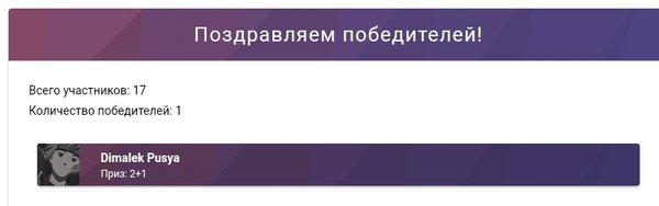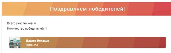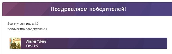 Результаты розыгрыша: ▪️2+1 Dimalek Pusya ▪️3+2 Алмас Жарылкасынов ▪️Напоминаю, что для получения приза необходима явится на кассу в течении двух дней с удостоверением личности и страницей вконтакте