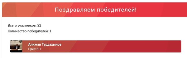2+1 Азамат Мухамеджанулы 3+2 Аскар Нурмаханов Напоминаю, что для получения приза необходима явится на кассу в течении двух дней с удостоверением личности и страницей вконтакте