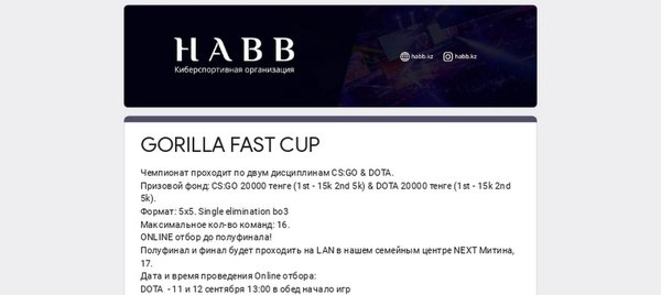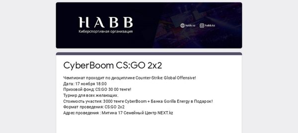 ентября 16:00 CS:GO — 22 сентября 16:00 Подробная информация в шапке профиля нашего Instagram habb.kz